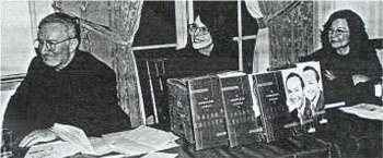 (left to right:) Robert Kimball, Abby Kimball, Linda Amiel Burns Robert Kimball Editor of The Complete Lyrics of Frank Loesser Honoring Frank Loesser in the January Program are: Gary Stevens, Amber Edwards, Laurence Rosania, Daryl Sherman, Max Morath, Peter Mintun, Kathleen Landis, Paulette Attie, Peter Johl Frank Loesser would indeed have been a most happy fella to hear the wonderful tribute that Robert Kimball arranged to humor him. Robert Kimball performed a marvelous balancing act, juggling just the right amount of facts from his new book, and selecting just the right songs and performers to present them. (Get the book for the fascinating facts, but here's what you missed if you weren't at the January meeting:) Amber Edwards and Laurence Rosania opened the afternoon with three classic Loesser songs: "Two Sleepy People," "My Heart is So Full of You," and "Rumble, Rumble, Rumble." Gary Stevens talked briefly about Loesser and their days in the Brill Building, as well as such other fascinating paces as Paris...where he had lunch with Deanna Durbin. She told him (with tears in her eyes) that one of her happiest memories of Hollywood was working with Loesser, and singing "Spring Will Be A Little Late This Year." The wonderful thing about hearing Gary's reflections is he has such a graphic way of describing them that you feel that you are there. Daryl Sherman mentioned how generous Frank Loesser had been in helping others and in giving them credit for their work. Daryl unconsciously proved herself his equal, by giving credit to Mary Martin and Connee Boswell as being the performers who introduced the two Loesser songs that Daryl sang: "Let's Get Lost," and "Sand in My Shoes." Peter Johl did his usual fine dramatic performance of setting up his material, and then singing the "Mama, Mama" number from Most Happy Fella. The beauty of his set-up is that anyone there who had not seen the show knew what the song was all about. Paulette Attie had been the unfortunate understudy who never got the call in Guys and Dolls. She finally got to perform one of Sarah's songs last Saturday: "If I Were a Bell." She proved that she would have been a great Sarah. And if someone is ready for another revival, so is Paulette. Max Morath has been one of my favorites from the first time I heard him perform his shows on the history of Ragtime and other earlier eras. He gave his usual fine interpretation to that evergreen favorite "Small Fry." Kathleen Landis left her perch at the Pierre's piano long enough to add one more star to Kimball's list of brilliant performers. She chose two of the beautiful ballads from Guys and Dolls: "A Woman in Love," and "I've Never Been in Love Before." Peter Mintun did what no one else did: he found two gems that very few (if anyone) in the audience knew - "The Traffic Was Terrific," and "I Wish I Were Twins." Peter is one of those undiscovered gems in that too few know how terrific he is. I've heard him being interviewed by Terry Gross and Leonard Lopate on local public service stations, and have learned a lot every time he spoke. |